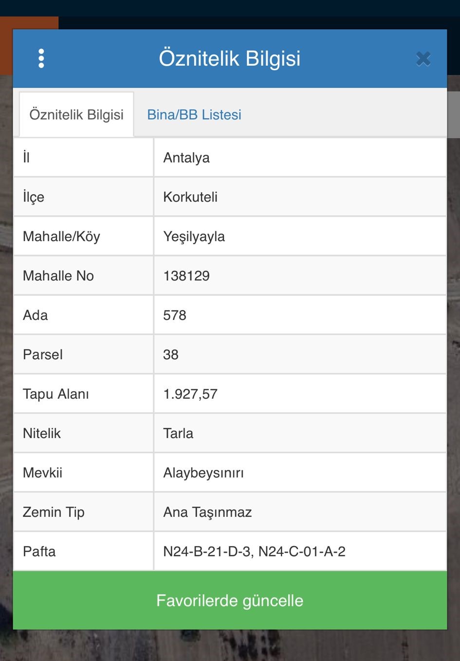 Antalya Korkuteli Yeşilyayla Mahallesi'nde 1925 metrekare elektrik su yol altyapısına sahip tarla Antalya merkeze 40 dakika mesafede Bölgede eczane süpermarket PTT lokanta ve benzeri işletmeler mevcuttur hızla büyüyen bir bölgedir Detaylı bilgi ve sunum için arayınız 0536 834 37 80